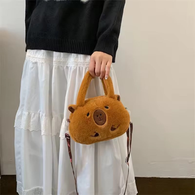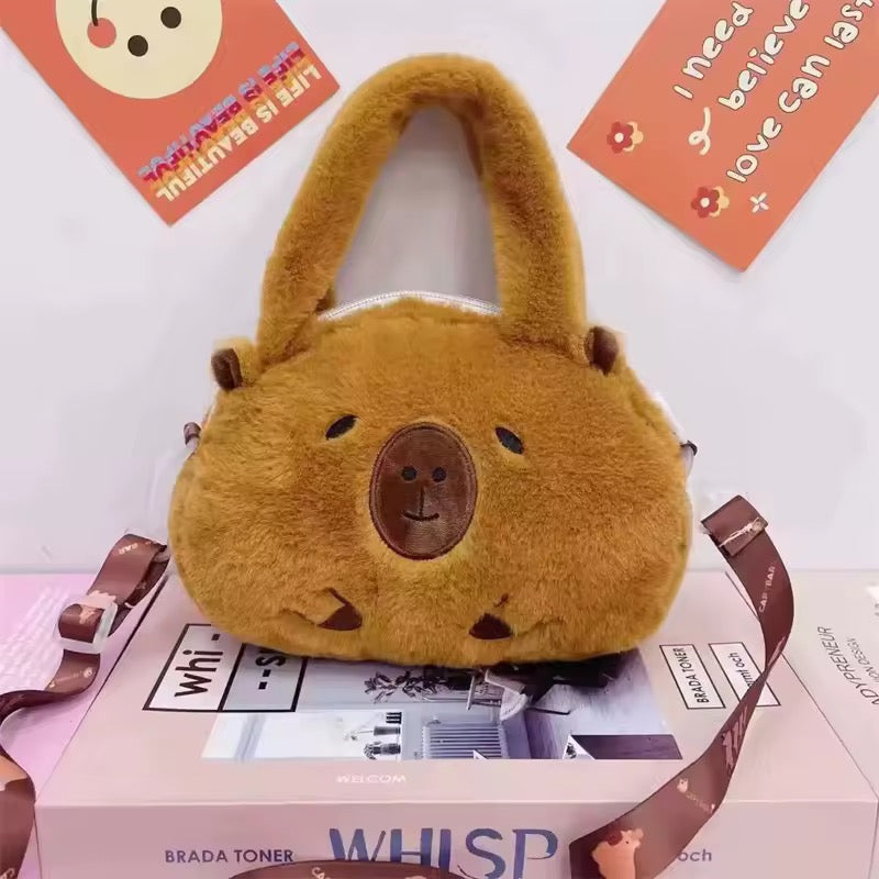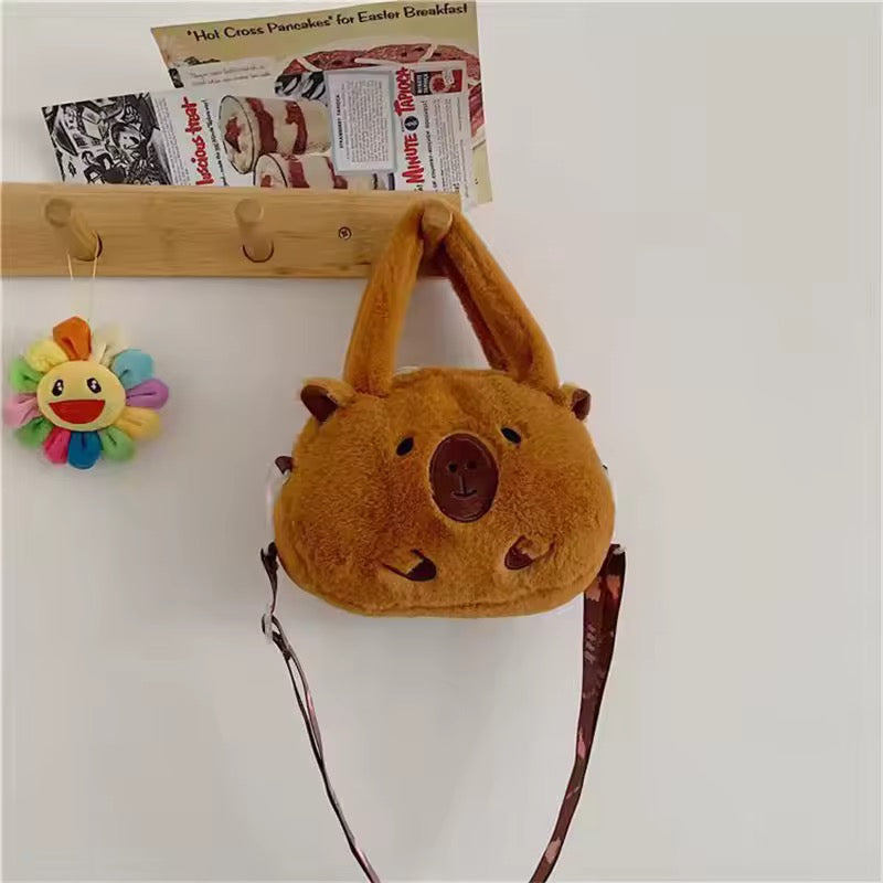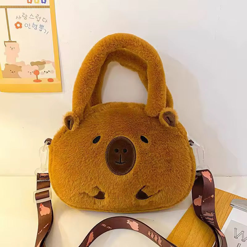 Изработена от супер мек плюш, чантата е във формата на усмихната капибара, която ще внесе уют и чар във вашия стил. Има сигурно закопчаване с цип, регулируема презрамка и достатъчно място за най-необходимото – телефон, портфейл и ключове. Перфектна е за ежедневни разходки, училище или като уникален подарък за любителите на животни.