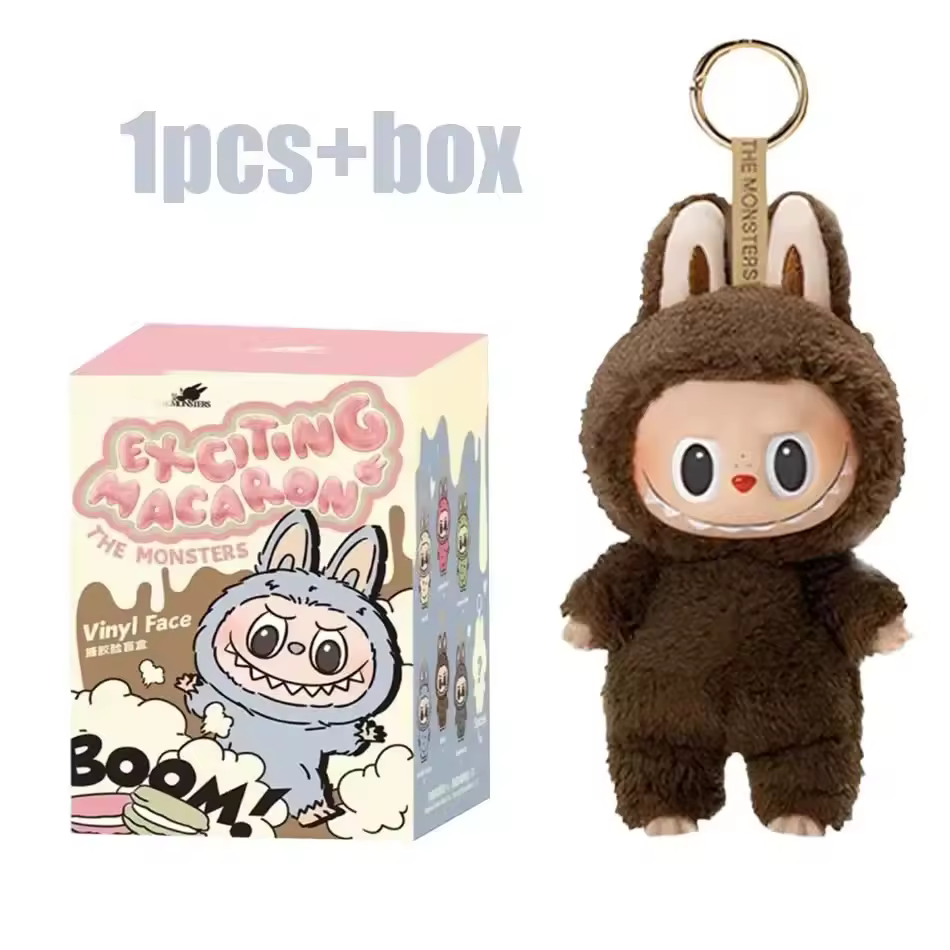 Играчката е облечена в пухкав кафяв костюм в цвят кестен с типичната усмихната винилова глава на Labubu и сладки заешки ушички. Идеална е за колекционери, подарък или декорация у дома!