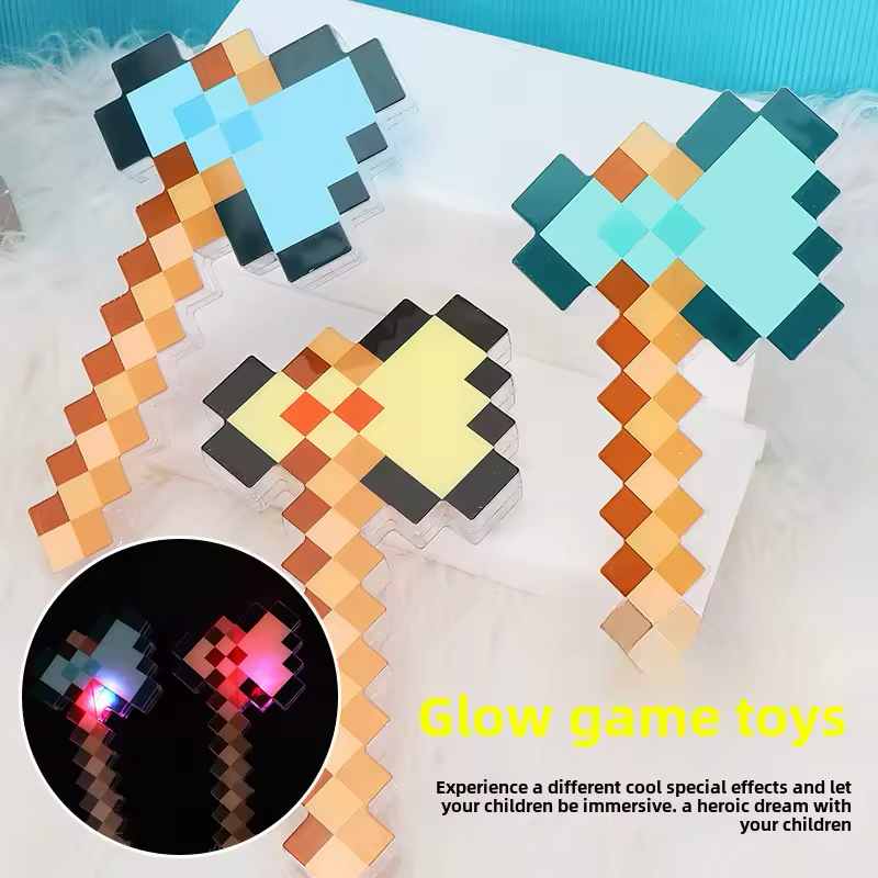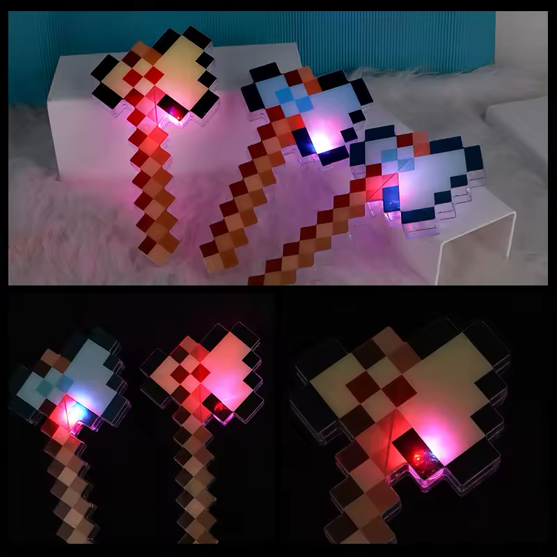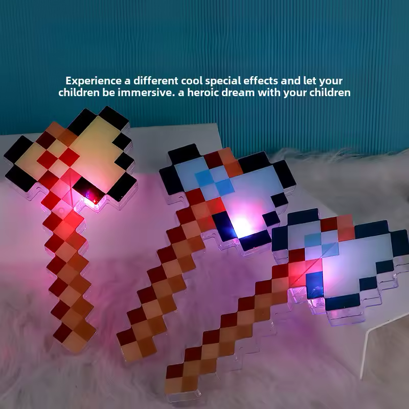 Оживете гейминг приключенията на вашето дете с тази страхотна пикселна LED брадва! Вдъхновена от света на Minecraft, играчката свети в ярки цветове – идеална е както за игра, така и за декорация. Независимо дали създават свои собствени истории или допълват костюма си, тази светеща брадва придава магическо геймърско усещане. Безопасна, лека и забавна за всички възрасти!